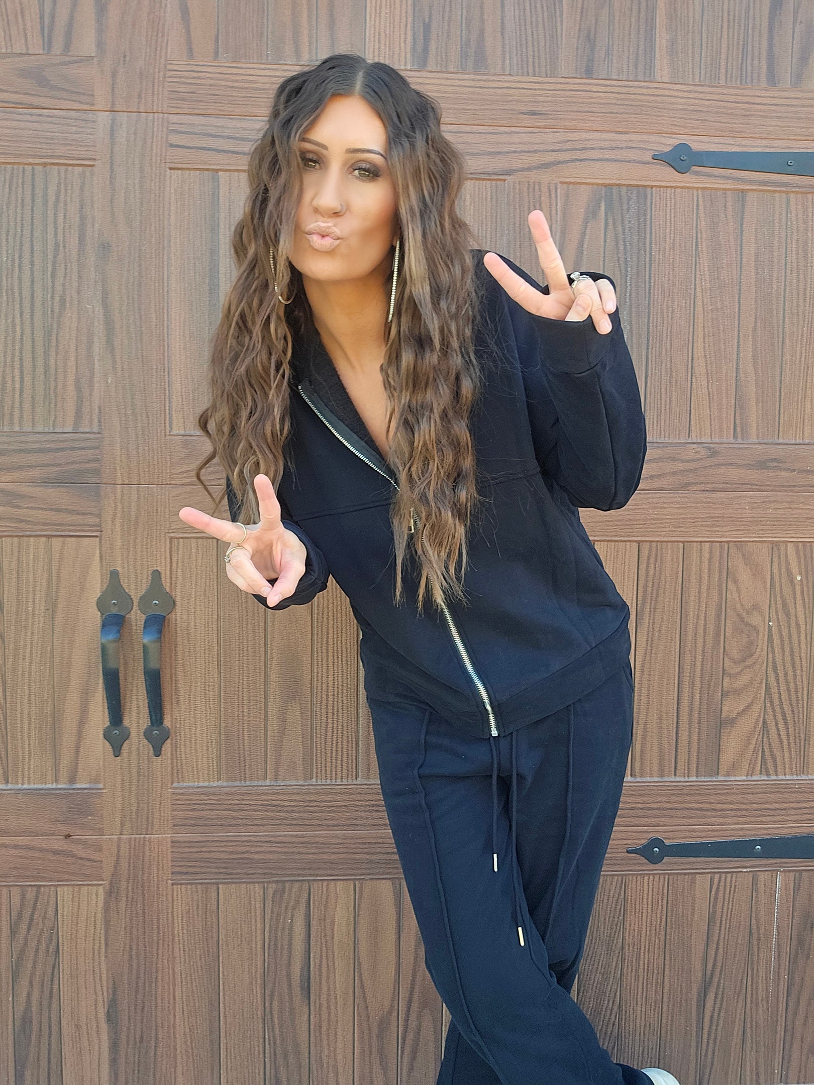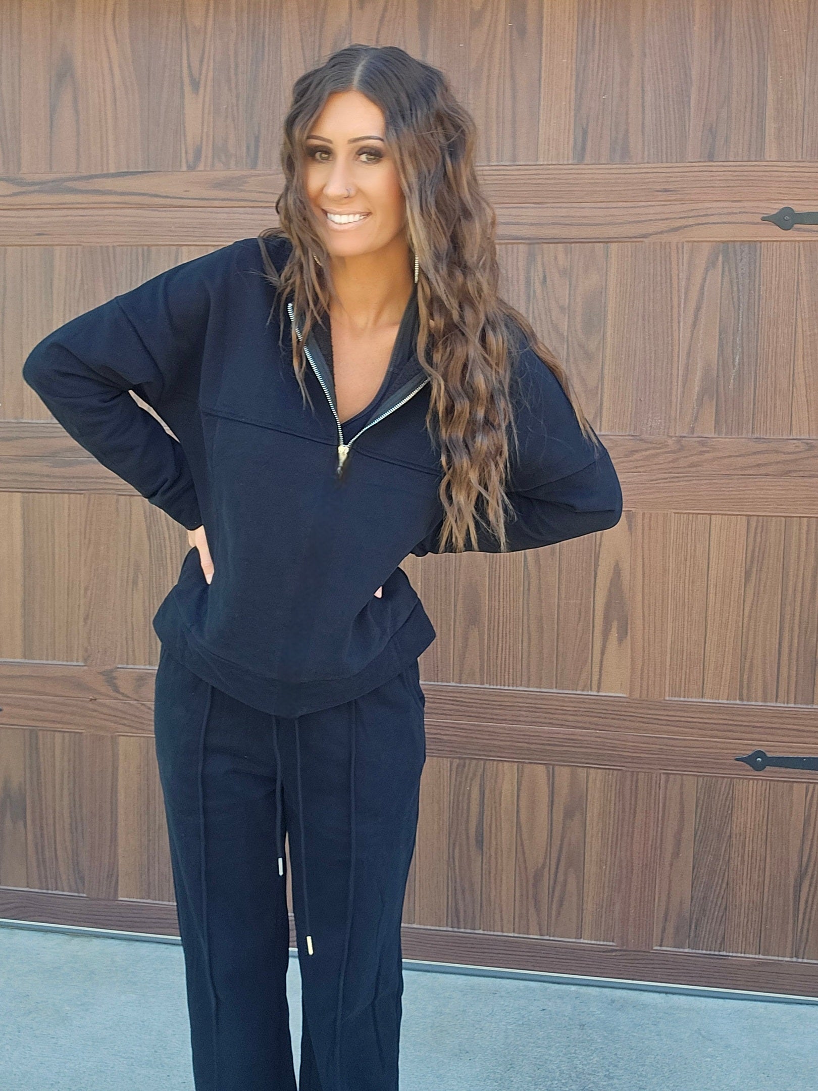 Versatile active set for women with a solid design. On-trend jacket with convenient zip-up closure. Comfortable casual pants with a drawstring waist for added ease.